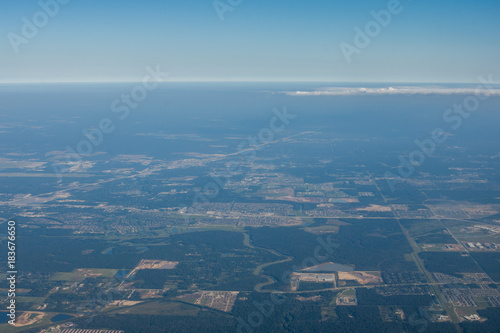 Metropolis Area of Houston, Texas Suburbs from Above in an Airplane