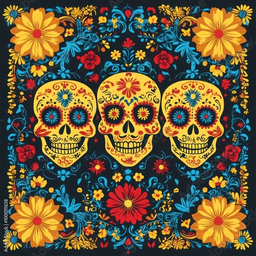 Mexican Papel Picado Bunting Banner for Dia de los Muertos Celebrations - Vector Background Design