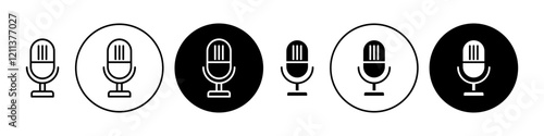 Microphone icons set in black filled and stroke line style
