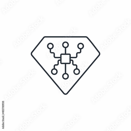 Microprocessor in a diamond frame. Electronic nano technologies. Semiconductor chip. Vector linear icon isolated on white background