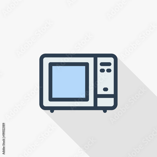 Microwave stove, household equipment, electric technology thin line flat icon. Linear vector illustration. Pictogram isolated on white background. Colorful long shadow design.