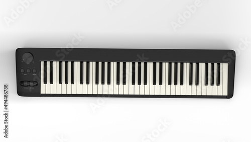 Midi-keyboard, schwarz, von oben, auf weissem Hintergrund