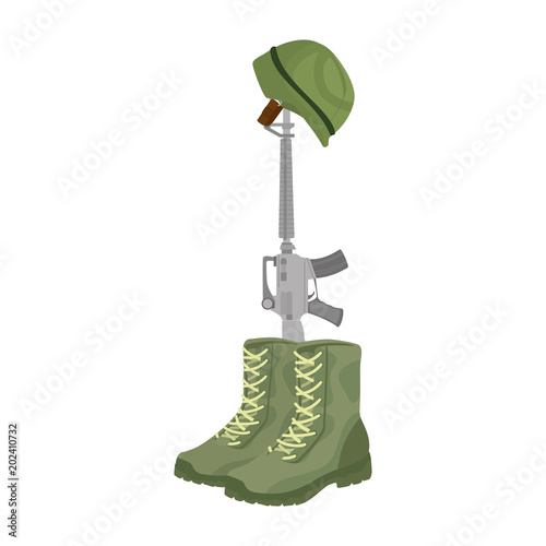 military boots with rifle and helmet vector illustration design