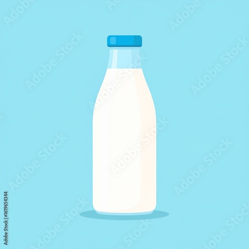 Milk Glass Bottle with Blue Cap Isolated On Light Blue Background in a Clean Minimalist Style
