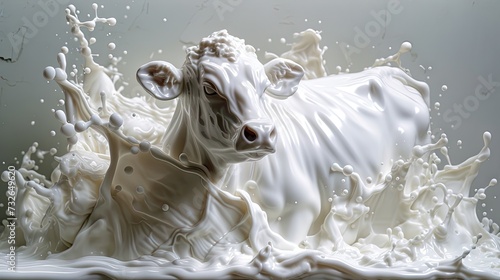 Milk splash in the form of a cow. Creative and artistic dairy concept. Splash of creativity with a cow shape