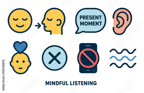 Mindful listening icon set. flat icons for communication and awareness tools