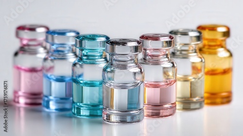 Mini glass vial stack isolated on white background