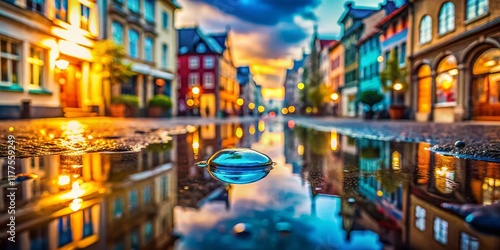 Miniature Cityscape: Blue Disc Reflection, Tilt-Shift Photography
