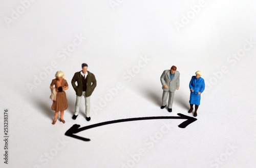 Miniature people who stand in a different direction.