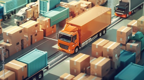 Miniature Truck with Package Cardboard Box for Logistics Delivery transportation business concept.