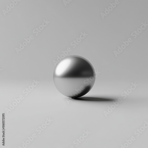 Minimal 3D metallic sphere floating on a smooth, gradient gray background, casting a soft shadow with a modern, industrial feel