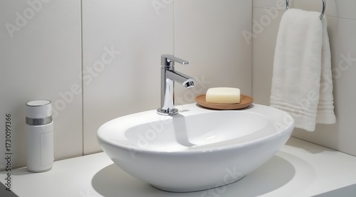Minimal Bathroom Counter with Soap and Towel