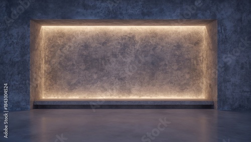 Minimal concept with front view on blank mock up wall in empty loft style hall