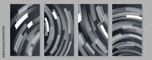 Minimal dark covers set. Future geometric design. Abstract 3d meshes. Modern black stripe cover design set. Luxury creative grey dynamic diagonal line pattern. Formal premium vector background