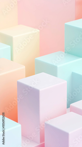 Minimal design featuring pastel cubes in soft colors, creating serene and modern aesthetic. arrangement evokes sense of calm and creativity