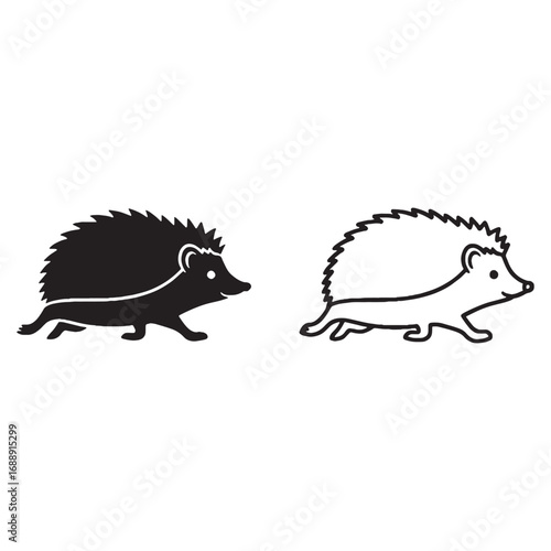 Minimal Hedgehog Silhouette & Hedgehog Lineart – Hedgehog Vector Graphic with Simplified Body Shape – Hedgehog Illustration – Silhouette and Lineart Set of Hedgehog