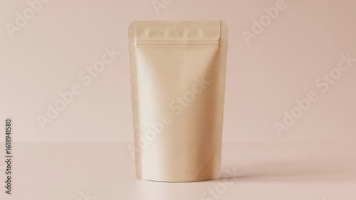 Minimal Kraft Stand-Up Pouch on Soft Beige Background Displayed Neatly