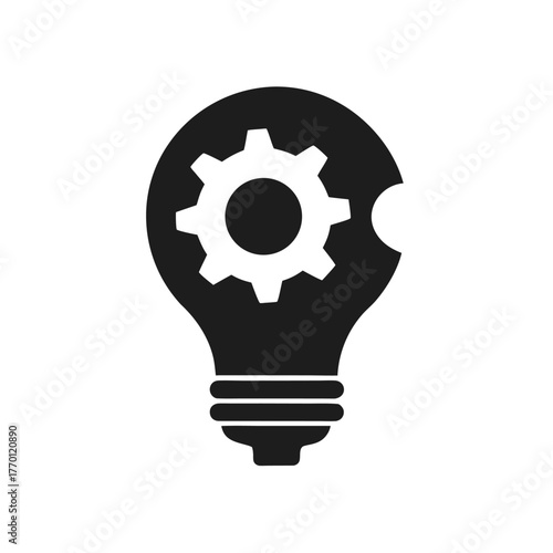 Minimal light bulb with gear innovation silhouette vector clean technology idea design on white background