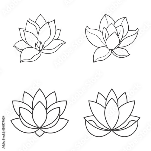 Minimal Lotus Flower Outlines – Black & White Floral Elements