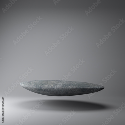 Minimal luxury rock design floating in grey wall background. Concept display scene stage platform showcase, product, sale, banner, presentation, cosmetic. 3D render