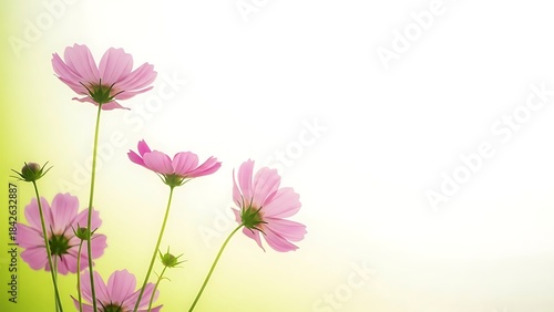 Minimal Pink Cosmos Flowers on Pastel Background, Modern Spring Floral Design