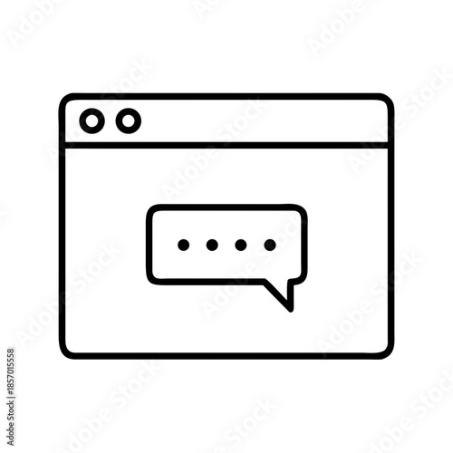 Minimal thin line vector icon of a browser window with chat bubble representing a chatbot or online conversation theme