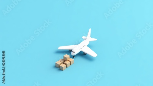 Minimalist 3D Isometric Illustration of Air Cargo Delivery
