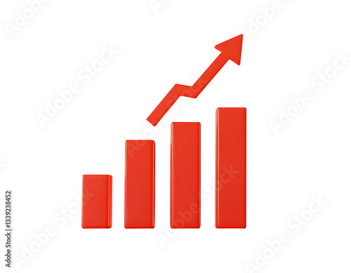 Minimalist 3D red business bar chart with upward arrow representing financial success