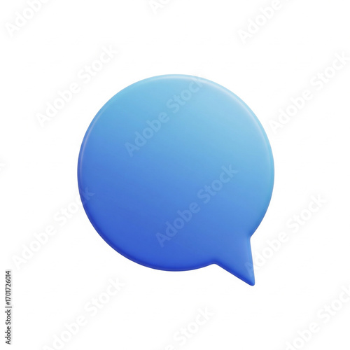 Minimalist 3D render of a blank blue chat bubble. A concept for communication, online conversation, and social media comments