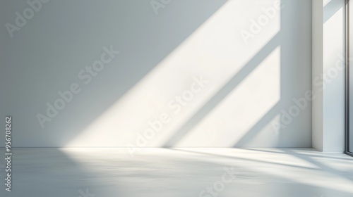 Minimalist Abstract White Background with Soft Shadows and Light Reflections, Ideal for Product Display or Advertising Backdrop in a Studio Setting