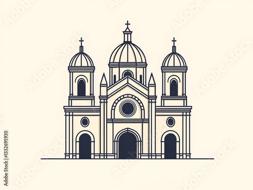 Minimalist Architectural of a Classic Cathedral with Intricate Spires and Arches