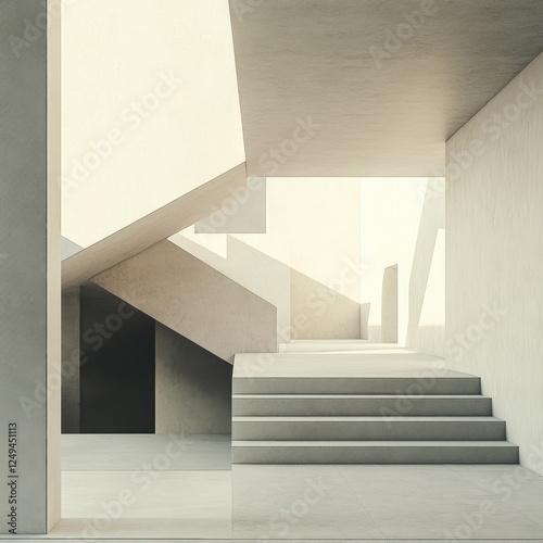 Minimalist Architecture with Staircase Geometric Blocks