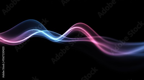 Minimalist audio wave glow softly in blue and pink gradients across a seamless black canvas.
