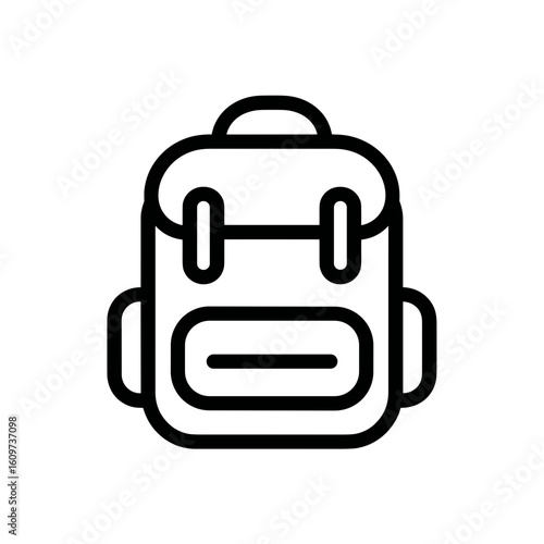 Minimalist backpack icon with front and side pockets