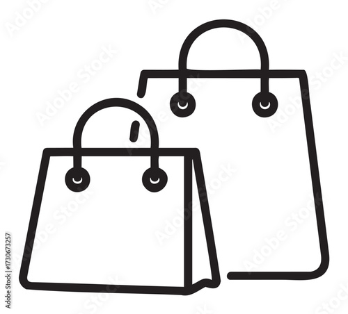 Minimalist black and white shopping bags icon outline illustration - stock vector