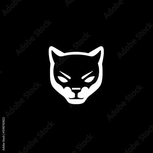 Minimalist black and white vector logo featuring a stylized cat face icon with sharp features and clean lines