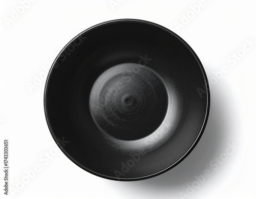 Minimalist black ceramic bowl isolated on a clean white background, showcasing simple elegance.