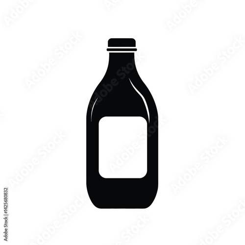 Minimalist Black Milk Bottle with Label Silhouette Icon on Transparent Background