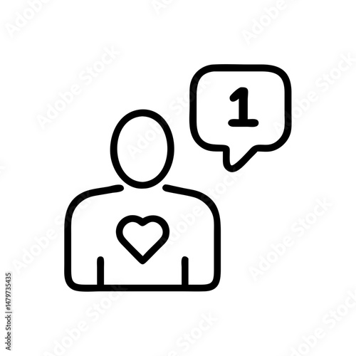 Minimalist black outline vector icon of a follower, symbolizing social media, connection, and online engagement on a transparent background.