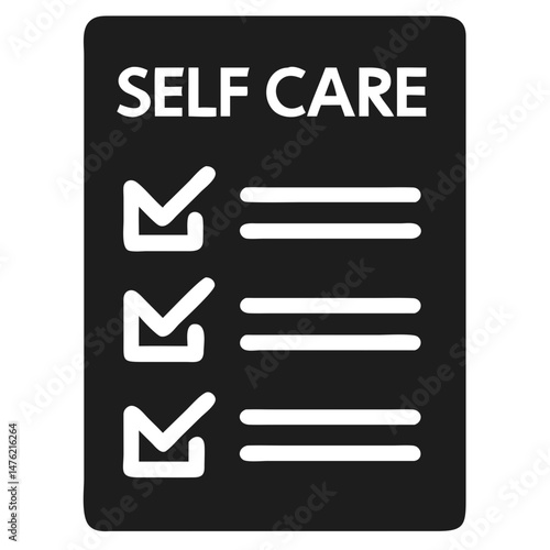 Minimalist black silhouette self care checklist with check marks and lines on white