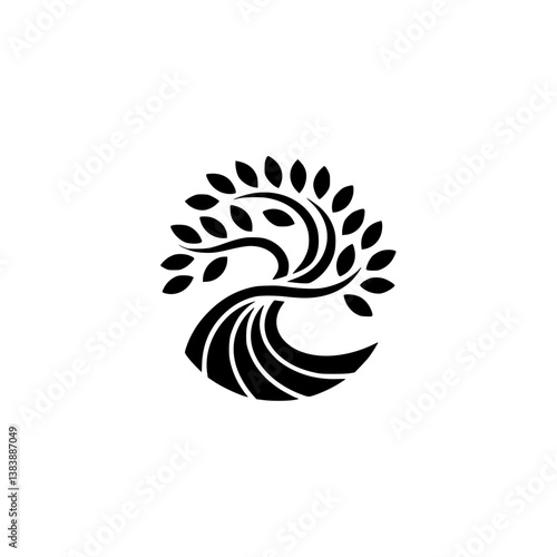 Minimalist Black Tree Logo on White Background, Modern Design