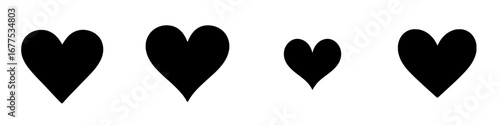 Minimalist black-and-white vector illustration of various heart silhouettes in different sizes