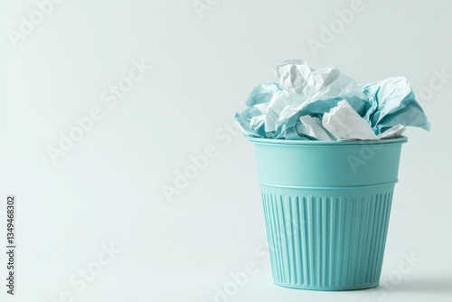 Minimalist Blue Trash Can with Crumpled Papers