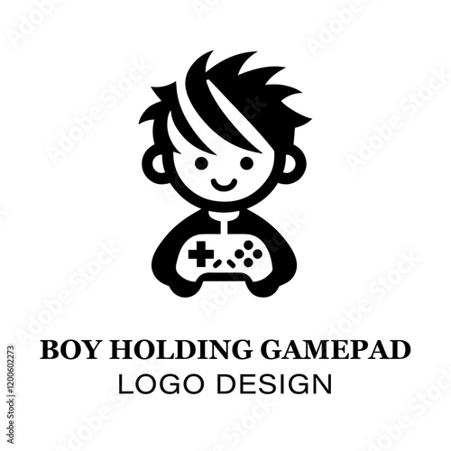 Minimalist Boy Holding Gamepad Logo Design for Gaming Brands, E-Sports Teams, and Video Game Enthusiasts Featuring Clean Black and White Style