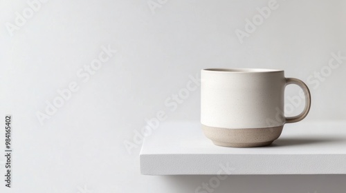 Minimalist ceramic mug placed on a clean surface Evoking simplicity and a sense of calm Ideal for product displays or lifestyle imagery