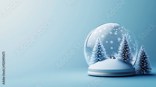 Minimalist Christmas snow globe on a blue background, creating a simple yet elegant holiday design.