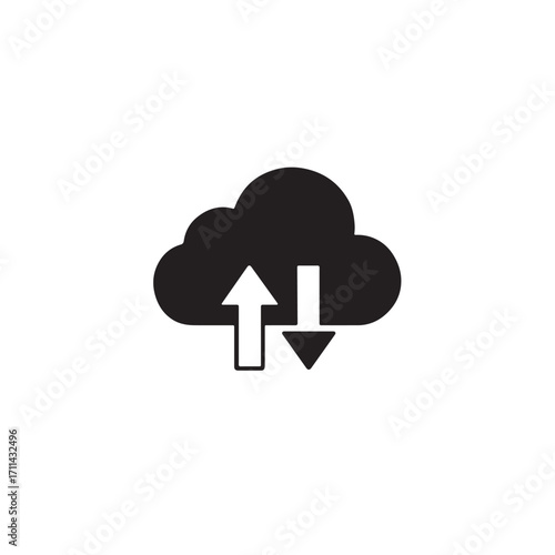 Minimalist Cloud Computing Icon with Upload and Download Arrows, a Vector Illustration of Data Transfer
