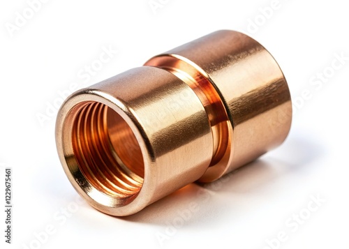 Minimalist Copper Pipe Fitting Connector Isolated on White Background - Stock Photo