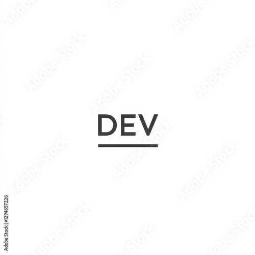 Minimalist Design of the Word "DEV" in Bold, with a Subtle Underline, on a Clean, White Background for Modern Aesthetics