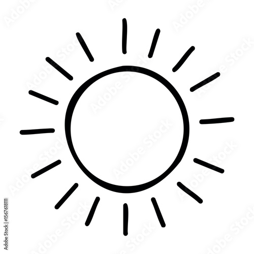Minimalist doodle sun with radiating lines in black and white. Vector hand-drawn doodle illustration